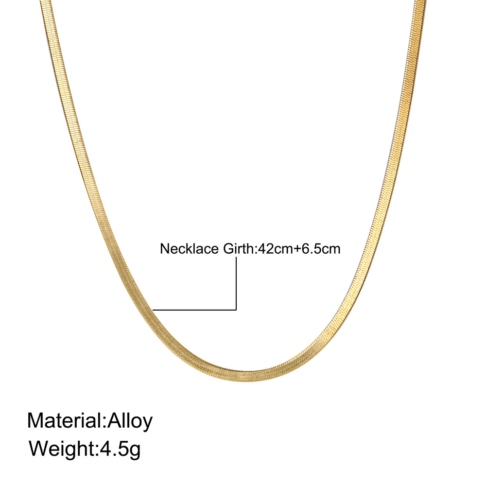 Vintage Layered Flat Snake Chain Herringbone Necklace for Women Simple Gold Color Metal Clavicle Chain Necklaces Party Jewelry CS5784901JCA6 – Sumsfashion